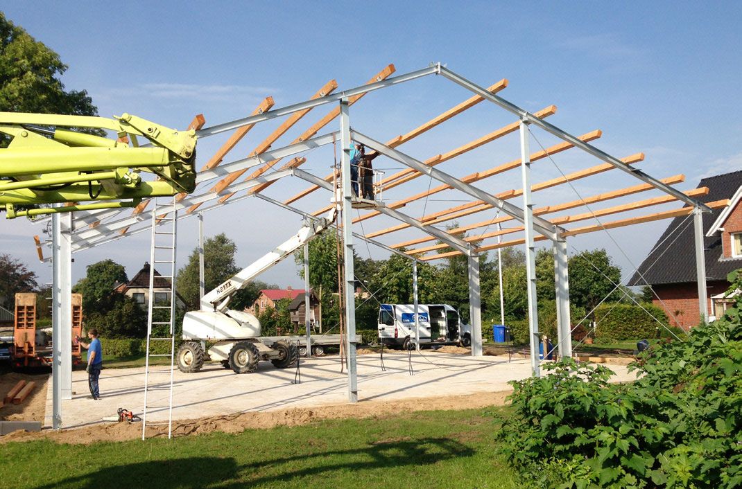 Wir fertigen, liefern und montieren die Stahlkonstruktion.